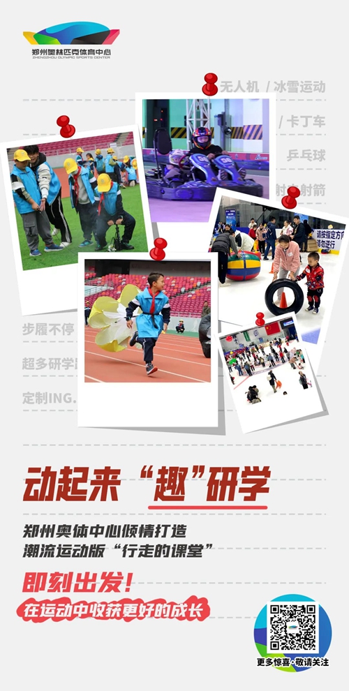 鄭州奧林匹克體育中心作為一座集健身(體驗(yàn))、競技(運(yùn)動(dòng))、休閑(娛樂)、觀光(旅游)于一體的運(yùn)動(dòng)主題休閑公園,匯集十余種潮流運(yùn)動(dòng),始終關(guān)注青少年文體綜合發(fā)展,根據(jù)不同運(yùn)動(dòng)特點(diǎn)定制不同主題的運(yùn)動(dòng)風(fēng)研學(xué)之旅,打造別具一格的運(yùn)動(dòng)版“行走的課堂”。