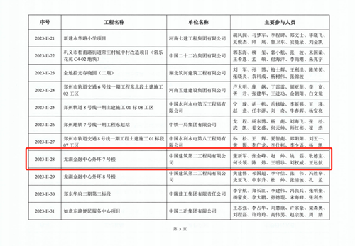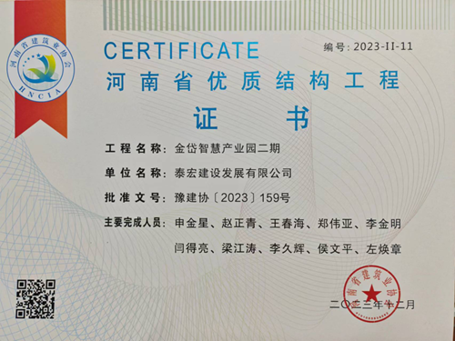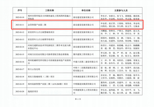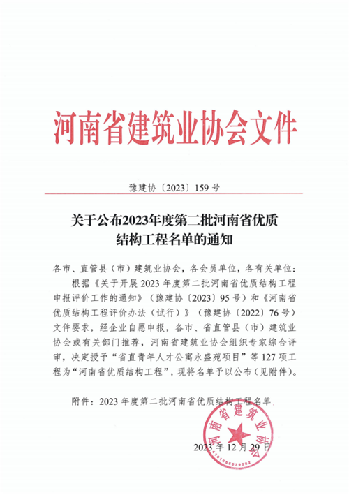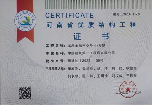 近日,河南省建筑業協會發布《關于公布2023年度第二批河南省優質結構工程名單的通知》(豫建協〔2023〕159號),城發·金岱智慧產業園二期和龍湖金融中心外環7號樓兩項工程順利通過專家組考評,榮獲“2023年度河南省優質結構工程”獎。