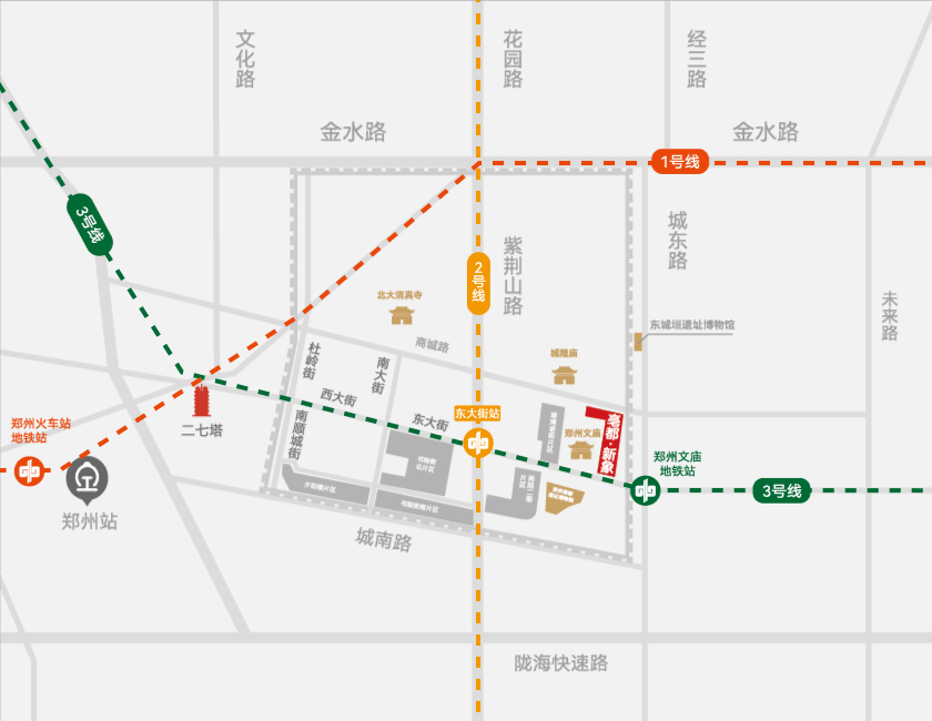 亳都·新象為鄭州商城遺址核心區首開地塊。項目毗鄰始建于東漢永平年間的鄭州文廟,為明清傳統建筑風貌商業街,其南北向的帶狀布局,如同一條穿越時光的紐帶,連接著歷史的深邃與現代的繁華。