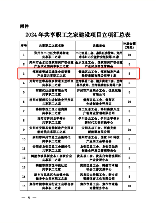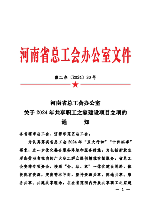 近日,河南省總工會發(fā)布《關(guān)于2024年共享職工之家建設項目立項的通知》,決定對城發(fā)金岱智慧產(chǎn)業(yè)園共享職工之家等32個共享職工之家建設項目進行立項,并對城發(fā)金岱智慧產(chǎn)業(yè)園共享職工之家給予資金補助,鄭州市僅有三家職工之家獲得立項,這是城發(fā)金岱智慧產(chǎn)業(yè)園共享職工之家建設運營后取得的第一份殊榮。