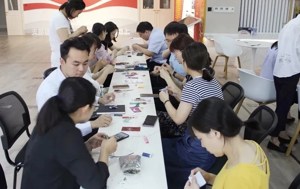 在濃厚的氛圍中,大家開(kāi)始制作香囊。大伙一邊穿針引線,學(xué)習(xí)香囊制作,一邊互幫互助,相互溝通交流。