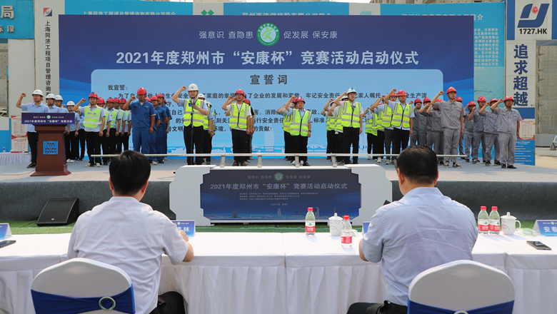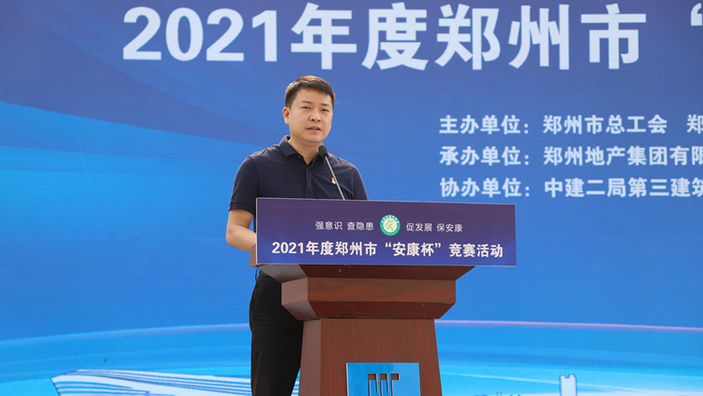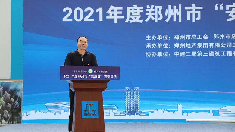 為深入貫徹落實習近平總書記有關加強安全生產工作的部署和要求,進一步強化各級各部門、各企業主體的安全責任意識,確保我市安全生產形勢持續好轉,職工安全健康不斷鞏固。6月11日上午,由鄭州市總工會、鄭州市應急管理局、鄭州市衛生健康委員會及鄭州市消防救援支隊主辦,鄭州地產集團工會、鄭州西流湖控股有限公司工會承辦的鄭州市2021年“安康杯”競賽啟動儀式在中原新區廟王東安置區項目成功舉行。鄭州市相關組織部門、市總工會成員單位、地產集團、西流湖公司、各參建單位共200余人參加啟動儀式。鄭州市一級巡視員,市總工會黨組書記、主席趙新中、鄭州市衛生健康委員會黨組成員、二級調研員楊德林、鄭州市應急管理局三級調研員安春茂、鄭州市消防救援支隊副支隊長、滅火救援指揮部部長李隆、鄭州市總工會副主席宋少丹、鄭州地產集團有限公司監事會主席、工會主席李靜波、鄭州地產集團西流湖公司黨支部書記、董事長、總經理  吉獻亮,中建二局第三建筑工程有限公司西北分公司黨委副書記、執行總經理趙海軍出席儀式。啟動儀式由市總工會勞動和經濟部部長宋慧主持。